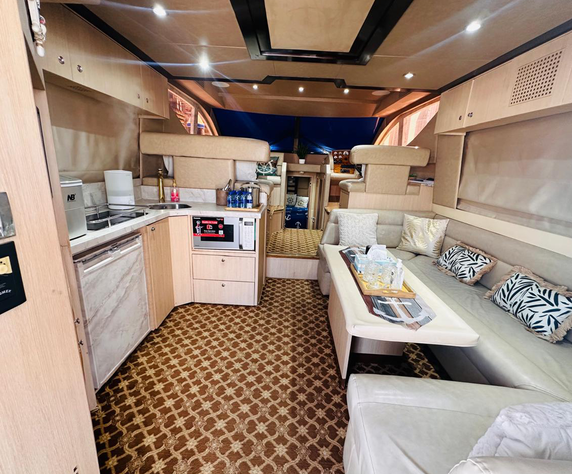 From its sleek exterior to its meticulously appointed interiors, every element of W Yacht exudes sophistication. Plush lounges, premium sound systems, and open-deck spaces provide the perfect setting for intimate gatherings, private celebrations, or high-profile events. Our professional crew ensures every moment onboard is effortless, personalized, and memorable ,from gourmet service to seamless cruising along Dubai’s iconic skyline.